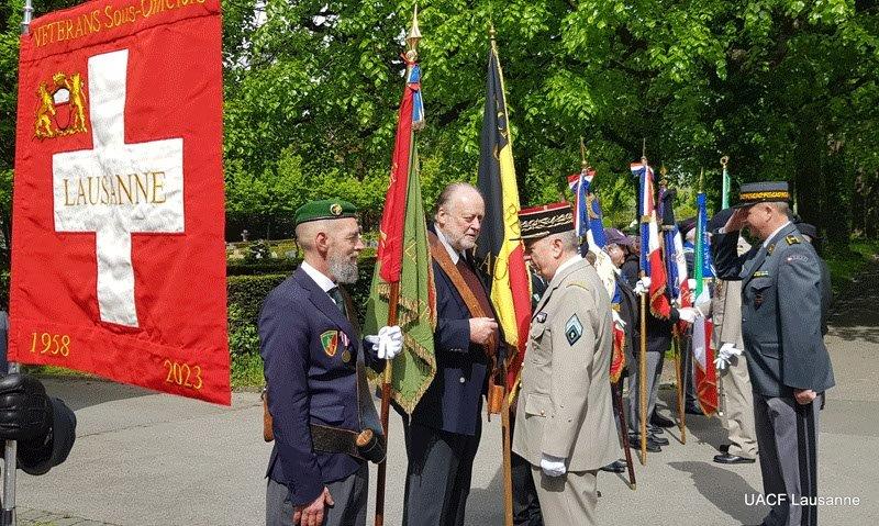 Les autorités militaires et diplomatiques saluent les drapeaux