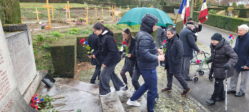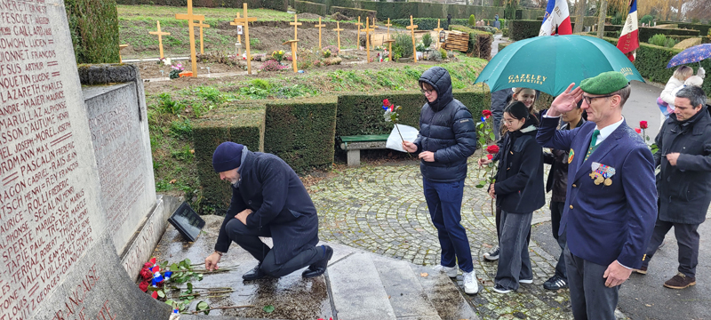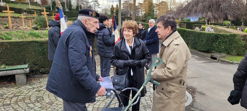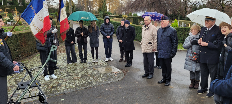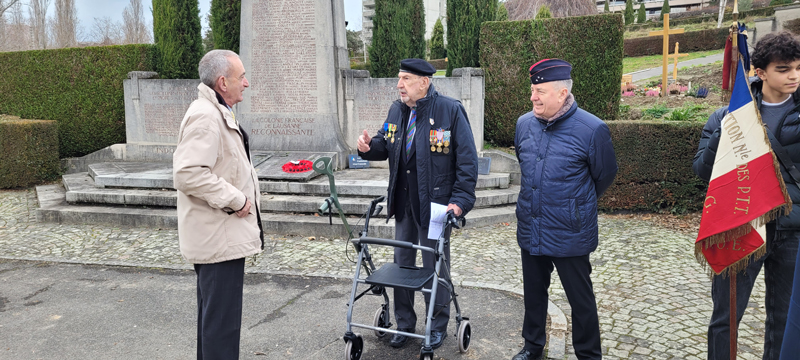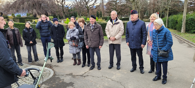 Pendant la guerre d'Algérie, des soldats français ont répondu à l'appel du devoir, affrontant les défis et les dangers sur le sol algérien. Leur engagement était empreint de courage et de dévouement, témoignant de la loyauté envers la patrie. Nombre d'entre eux ont fait le sacrifice ultime, laissant derrière eux la quiétude de leurs foyers pour servir dans un contexte où l'incertitude et la violence étaient monnaie courante. Leurs noms demeurent inscrits dans l'histoire, rappelant les sacrifices consentis au cours de ces années tumultueuses. Les soldats français, tombés sur cette terre, reposent désormais dans le silence éloquent de leurs tombes. Leurs actions ont été le reflet des idéaux et de l'honneur de la France, même dans des circonstances difficiles et controversées. Aujourd'hui, nous honorons la mémoire de ces soldats. Leur contribution a laissé une empreinte indélébile, contribuant à façonner une période complexe de notre histoire. Le respect envers leur sacrifice et leur dévouement demeure, car ils ont joué un rôle significatif dans les pages de notre passé. René Narguet, Président et Secrétaire général UACF Rendez-vous est donné directement au monument du cimetière du Bois de Vaux où nous accueillons les membres et sympathisants de l’UACF dont : Divisionnaire (ret) Yvon Langel, Général de division (2S) Christian Peraldi, Pasteur Pierre Boismorand, Monsieur Sébastien Gibert et Monsieur Marc Delclos qui accompagnent la garde d’honneur et les élèves de terminale du Lycée français de Lausanne Valmont Monsieur André Huon, Délégué général pour la Suisse du SF Monsieur Evrard Schwartz, Président de l’AALE SR Mesdames et Messieurs les membres de l’UACF Après le message d’accueil du Président de l’UACF, parole est donnée au Général Peraldi qui nous décrit cette guerre, puis le Président UACF nous parle de son vécu de + de 6 années parmi les soldats et la population. Enfin le Pasteur nous invitera à nous souvenir. Ensuite chacun déposera une rose rouge au pied du monument AFN. Nous observerons alors une minute de silence et chanterons a capela La Marseillaise. Nous rejoindrons alors le restaurant du port à Ouchy où nous attend un généreux couscous. A relever le geste sympathique et généreux de notre camarade M. Pierre Félix Lavie, ancien pilote en Algérie de 1957 à 1960, qui a offert 3 bouteilles de champagne à l’assemblée ; ce qui a causé qqs problèmes de logistique au sommelier mais qui a rallumé la braise à nos chanteurs pour entonner les chants patriotiques. René Narguet, Président et Secrétaire général UACF