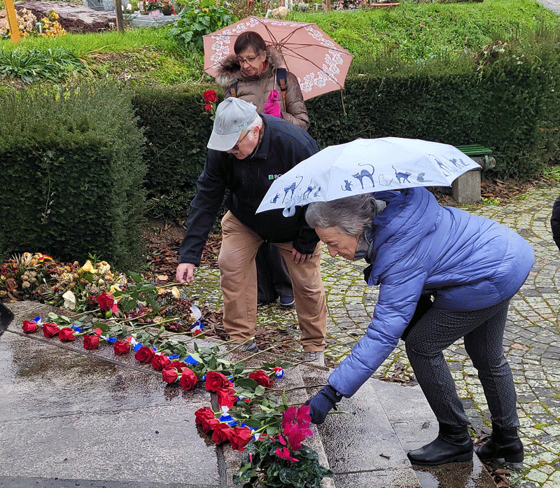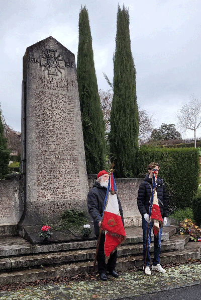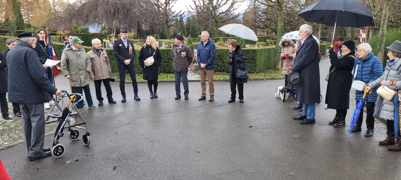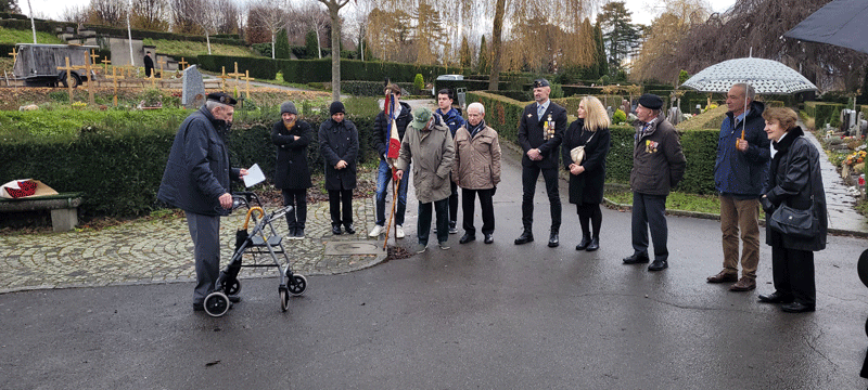 Rendez-vous est donné au monument du cimetière du Bois de Vaux où nous accueillons : le Divisionnaire (ret) Yvon LANGEL M. Sébastien GIBERT, Chef d’établissement de l’ISM Lycée français de Lausanne Valmont et M. Marc DELCLOS, Adjoint du Chef d’établissement, accompagnant la garde au drapeau de l’établissement et quelques élèves, le Major Jérémy LANGLOIS, nouveau membre, accompagné de Dame Béatrice sa compagne, ainsi qu’un peu plus d’une vingtaine de membres qui se sont joint à nous en ce jour de Mémoire. Nous regrettons l’absence : du Général (2s) Christian PERALDI et d’Evelyne, sa compagne, retenus à Lyon pour un pb de santé et du Pasteur Pierre BOISMORAND, soutenant une famille dans le deuil. Après le message d’accueil du Président de l’UACF, le Divisionnaire Langel, nous parle des conflits qui secouent actuellement notre monde. Puis le Président parle de son vécu de 6 ½ années sur le terrain au contact de la population et de sa mission auprès du commandement de la ZSA, alors même que nos pays se déchirent à nouveau. Comme à l’accoutumé, chacun déposera une rose au pied du monument. Nous observerons alors une minute de silence et entonnerons a capela la Marseillaise. Nous rejoindrons alors le restaurant du Port à Ouchy où un apéritif offert par l’association nous attend avant de déguster notre traditionnel couscous. Puis après quelques chaleureux échanges, nous rejoindrons chacun, chacune nos pénates, le devoir accompli de la meilleure façon qui soit. René NARGUET, Président et Secrétaire général UACF |